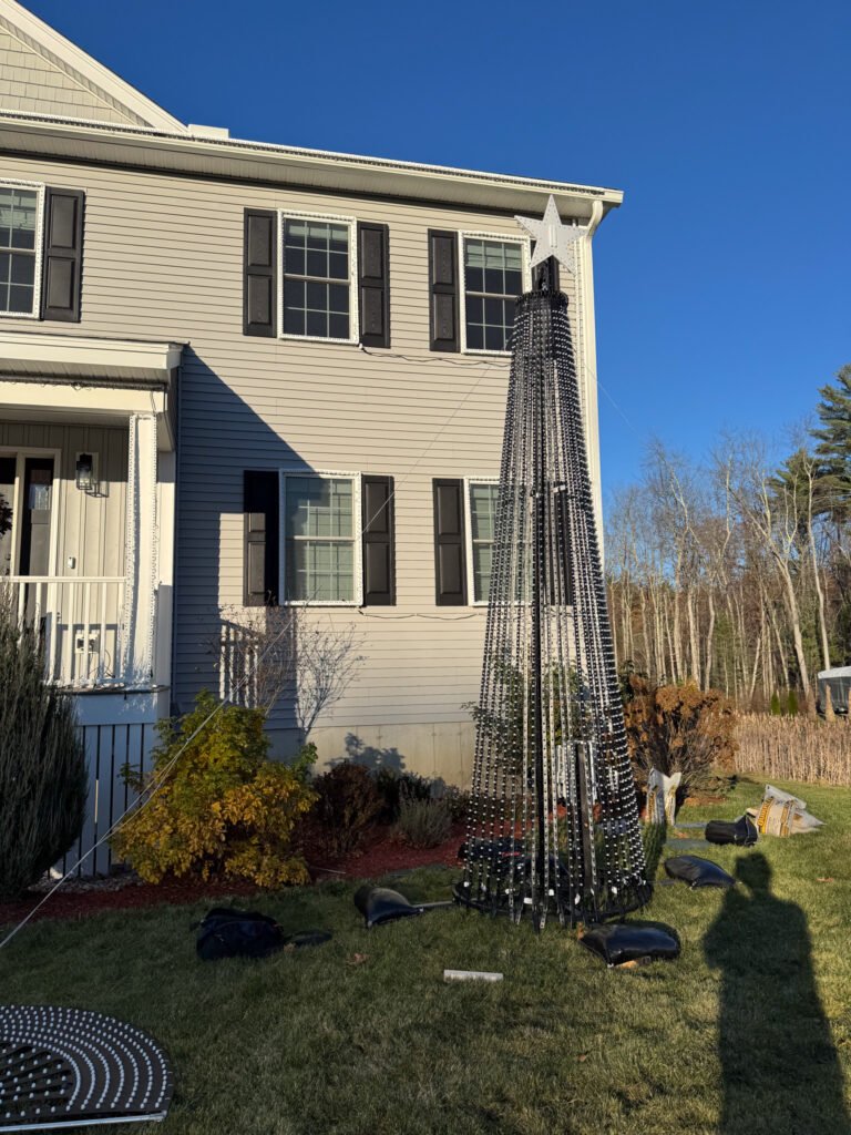 Do a test run: Set your tree up in early fall to test out the animations and lighting approach. I learned a lot here and it only took me about 30 minutes to set up my tree. You will need someone to help because it is so large.